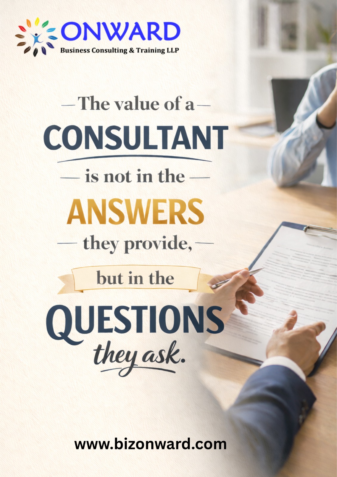 The true value of a consultant is often misunderstood. It does not lie in ready-made answers or quick fixes. It lies in the ability to ask the right questions. Effective consultants challenge assumptions, uncover blind spots, and bring clarity to complex situations. By asking thoughtful, structured questions, they help organizations see problems from new perspectives and identify root causes rather than symptoms. Answers can be borrowed. Questions cannot. The right questions force reflection, reveal inefficiencies,